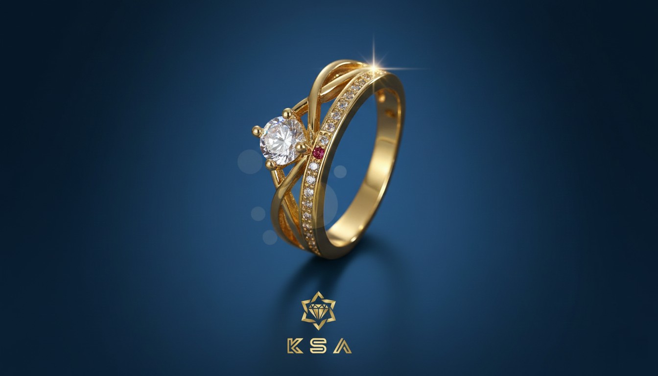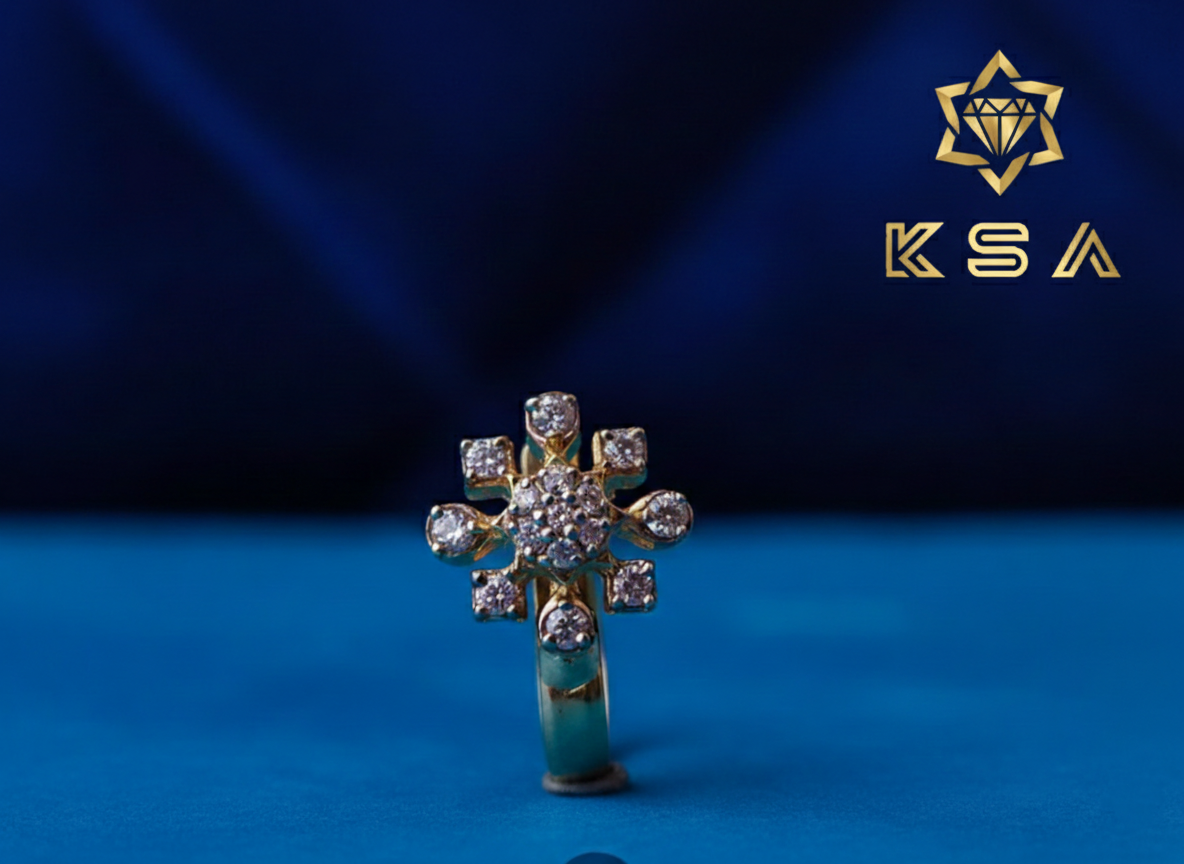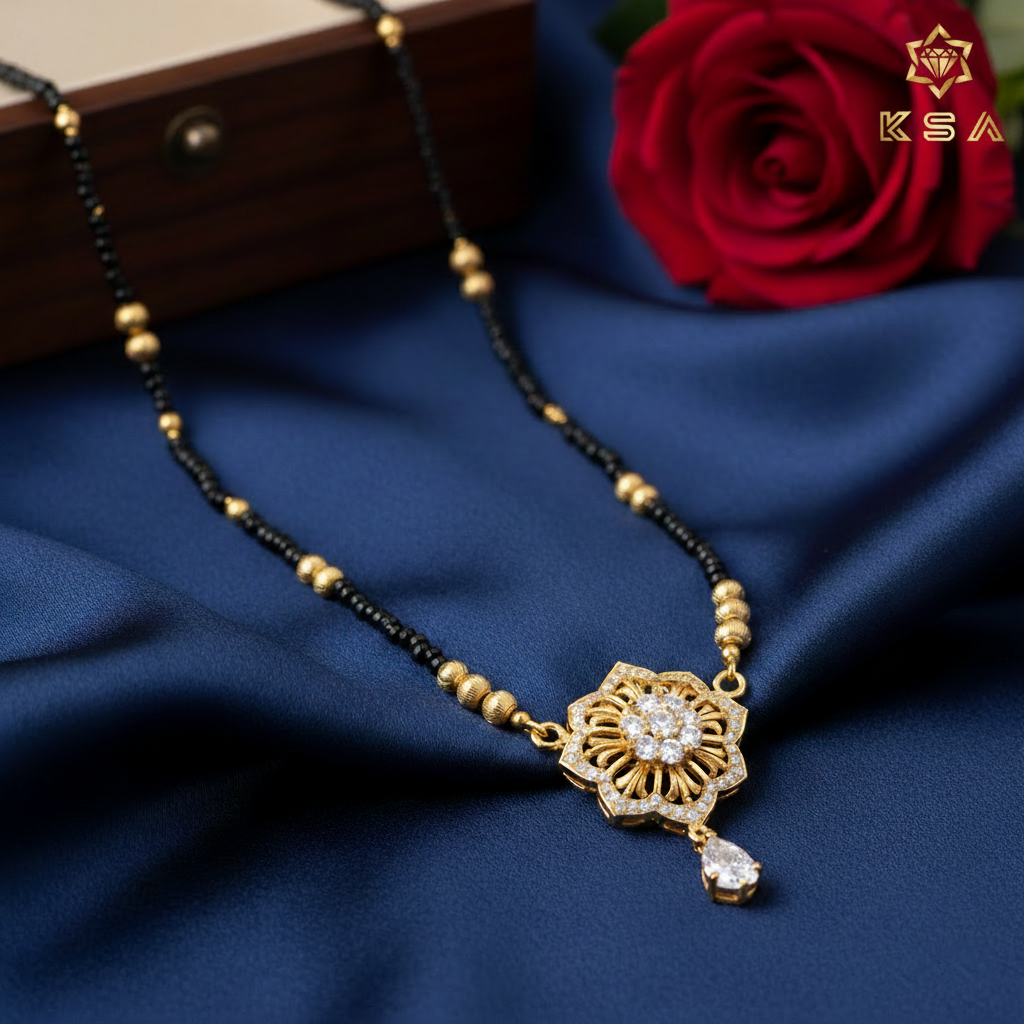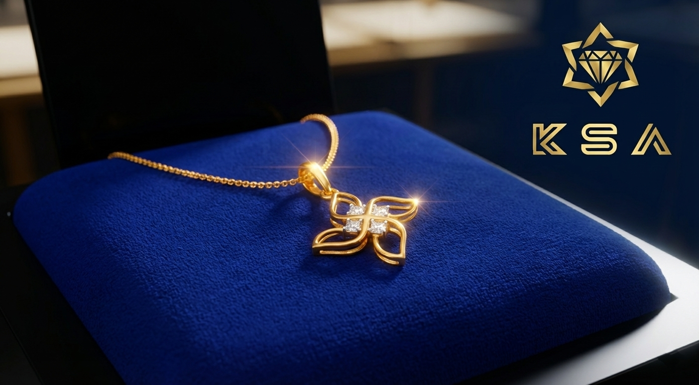 Golden Grace: Intricate Pendant with Four Diamonds | 014