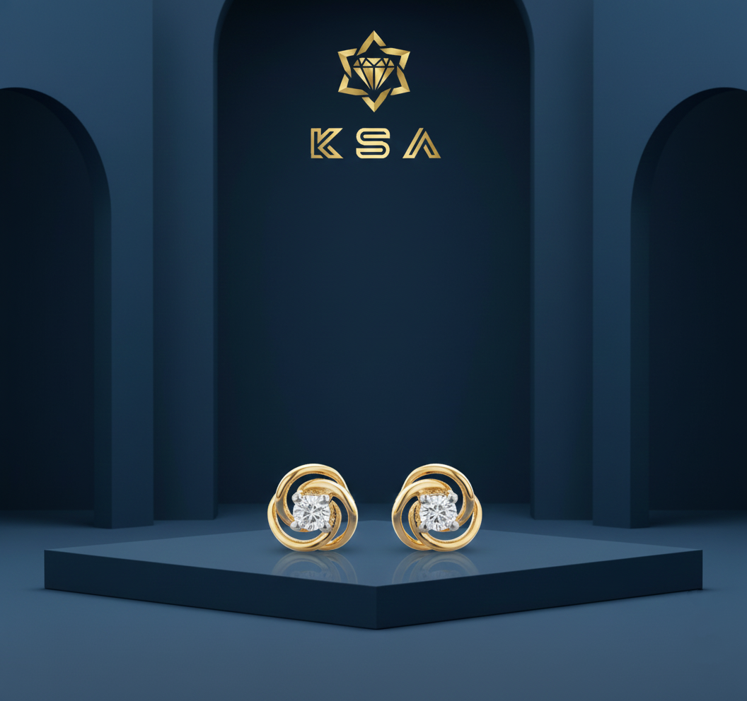 Graceful Butterfly Diamond Gold Stud Earrings | 009