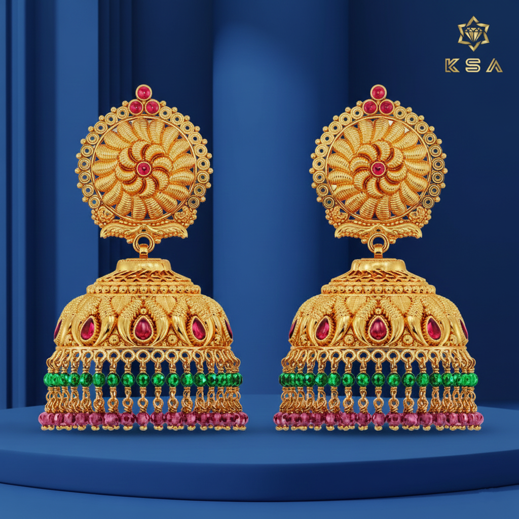 Antique Ruby Drop Temple Jhumka Earrings | 021