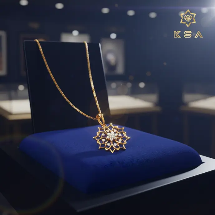 Golden Grace: Intricate Pendant with Four Diamonds | 002